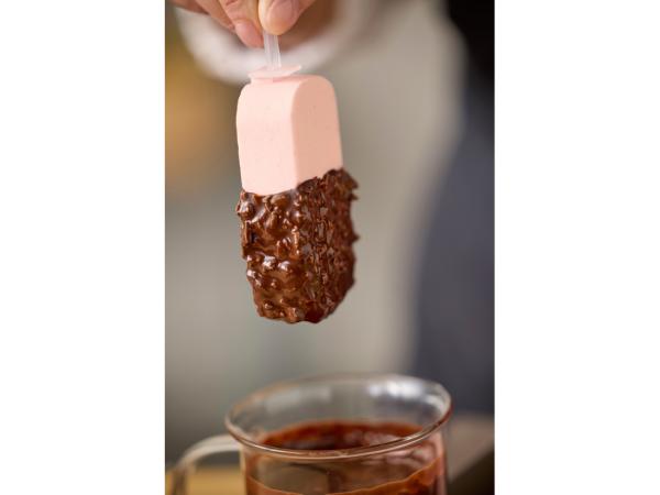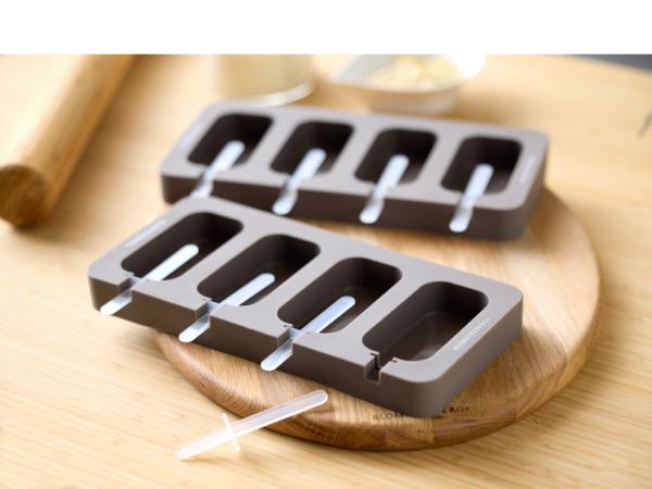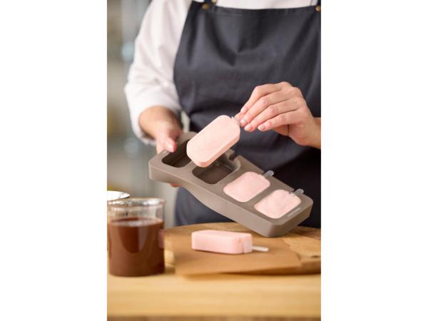 Denna isglassform i mjukt och läckert silikon har plats för fyra hemgjorda isglassar. Fyll formen med din favoritsaft, smoothie eller glassmix. Stick ner de medföljande plastpinnarna i formen och låt frysen göra jobbet åt dig. När du är sugen på en glass lirkar du enkelt ut din isglass ur den flexibla silikonformen. Formen är fryssäker (max -20°C) och kan enkelt rengöras i diskmaskin.