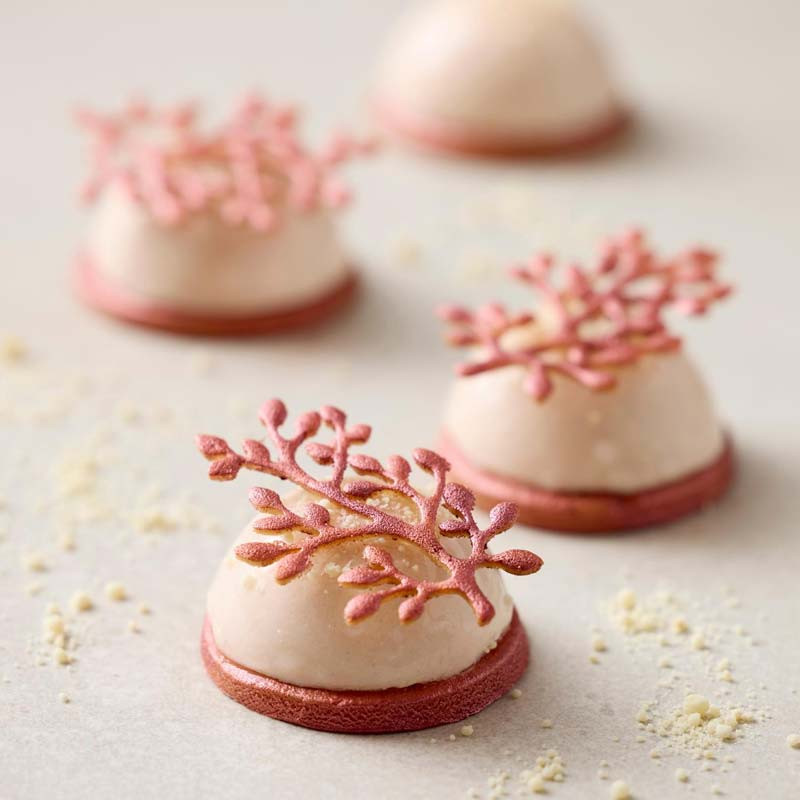 Produktbeskrivning:Skapa eleganta och detaljerade chokladdekorationer med Blomsterbergs silikonform Den flexibla silikonformen gör det enkelt att gjuta tunna och spröda chokladgrenar som ger dina desserter och tårtor ett exklusivt utseende. Formen säkerställer att chokladen lossnar smidigt och bevarar sina fina detaljer. Perfekt för att dekorera praliner, bakverk eller som en stilfull topping på en dessert.