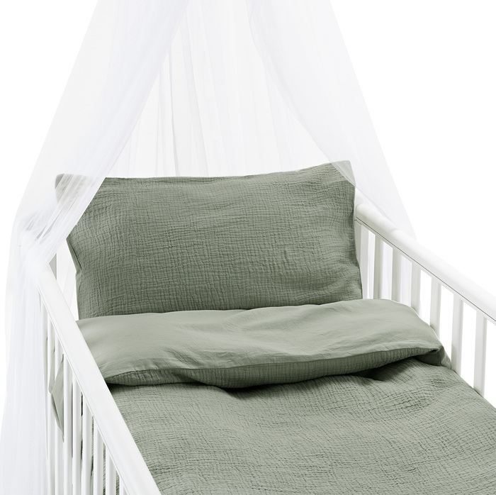 Produktbeskrivning:Bäddset bestående av ett örngott och ett påslakan med en krinklad framsida och slät baksida. Tillverkade i fin bomullspercale som känns svalt och skönt att sova i. Passande storlek för spjälsäng. Finns även i olika färger för både enkel- och dubbelsäng. Rolling påslakan och örngott bör vändas ut- och in vid tvätt, vi rekommenderar även att använda ett flytande tvättmedel. Detta för att bevara färgen så länge som möjligt och minska slitaget. Flytande tvättmedel är även bättre för vår miljö.