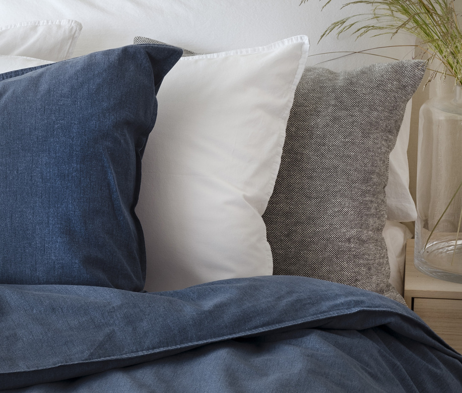 Påslakan och örngott i skön bomullskvalitet med dubbelstickade kantsömmar och en tvättad vintage look.