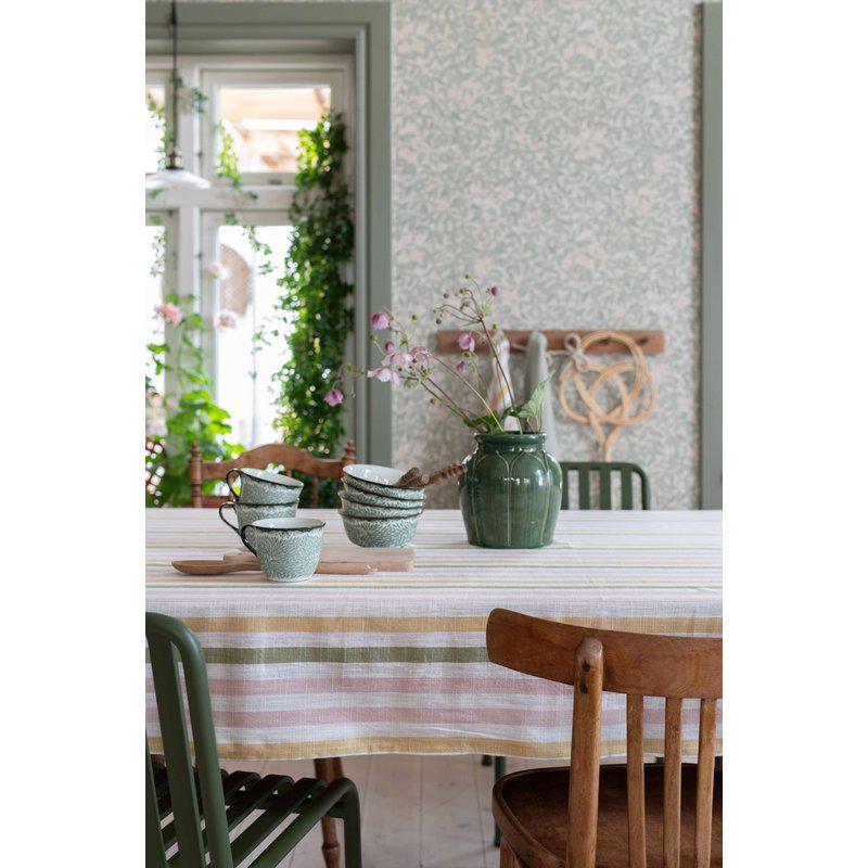 Duk tillverkad i garnfärgad bomullsslub med en naturligt vacker struktur och levande yta. Slubvävens unika textur ger duken en handgjord känsla med subtila färgskiftningar som skapar liv och karaktär.