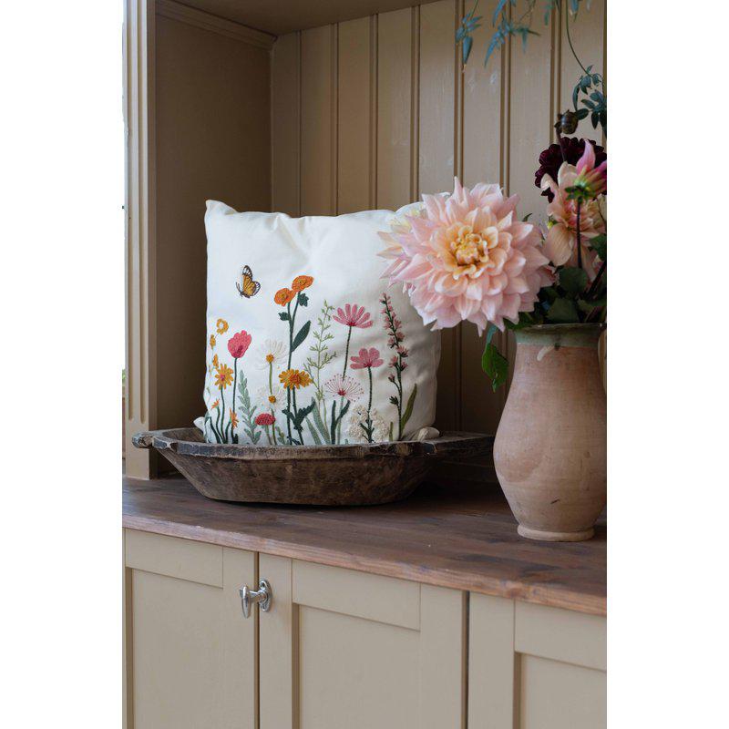 Produktbeskrivning:Kuddfodral i 100% bomull med ett ljuvligt broderat blommönster på framsidan och enfärgad baksida, tillför både charm och elegans till hemmet. De noggrant sydda detaljerna skapar ett levande och romantiskt uttryck som för tankarna till klassiskt hantverk och tidlös skönhet.