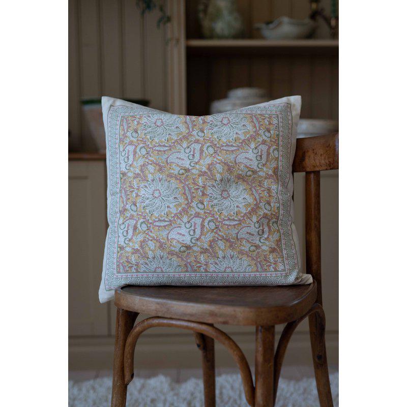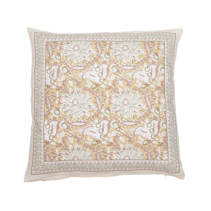 Kuddfodral i 100% återvunnen bomull som utstrålar stil och elegans med sitt magnifika mönster i härliga färger. Runtom finns en vacker bård som ramar in designen.
