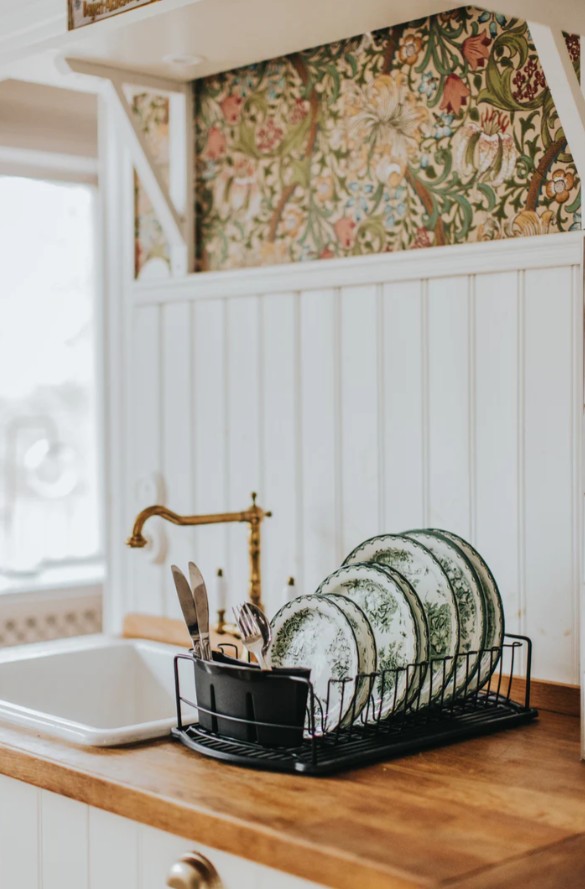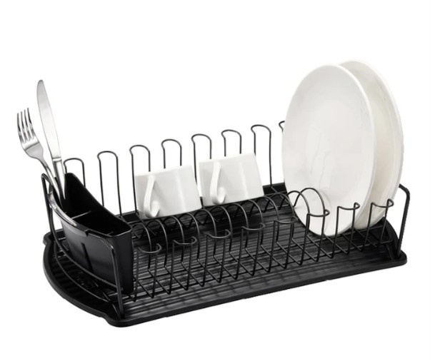 Disa diskställ i svart metall ger ordnad och rymlig torkyta för både tallrikar och bestick. Den stabila konstruktionen håller formen även vid full belastning. Med sina mått 48 × 28 × 10,5 cm passar det smidigt på bänken och skapar ett rent, strukturerat köksflöde.