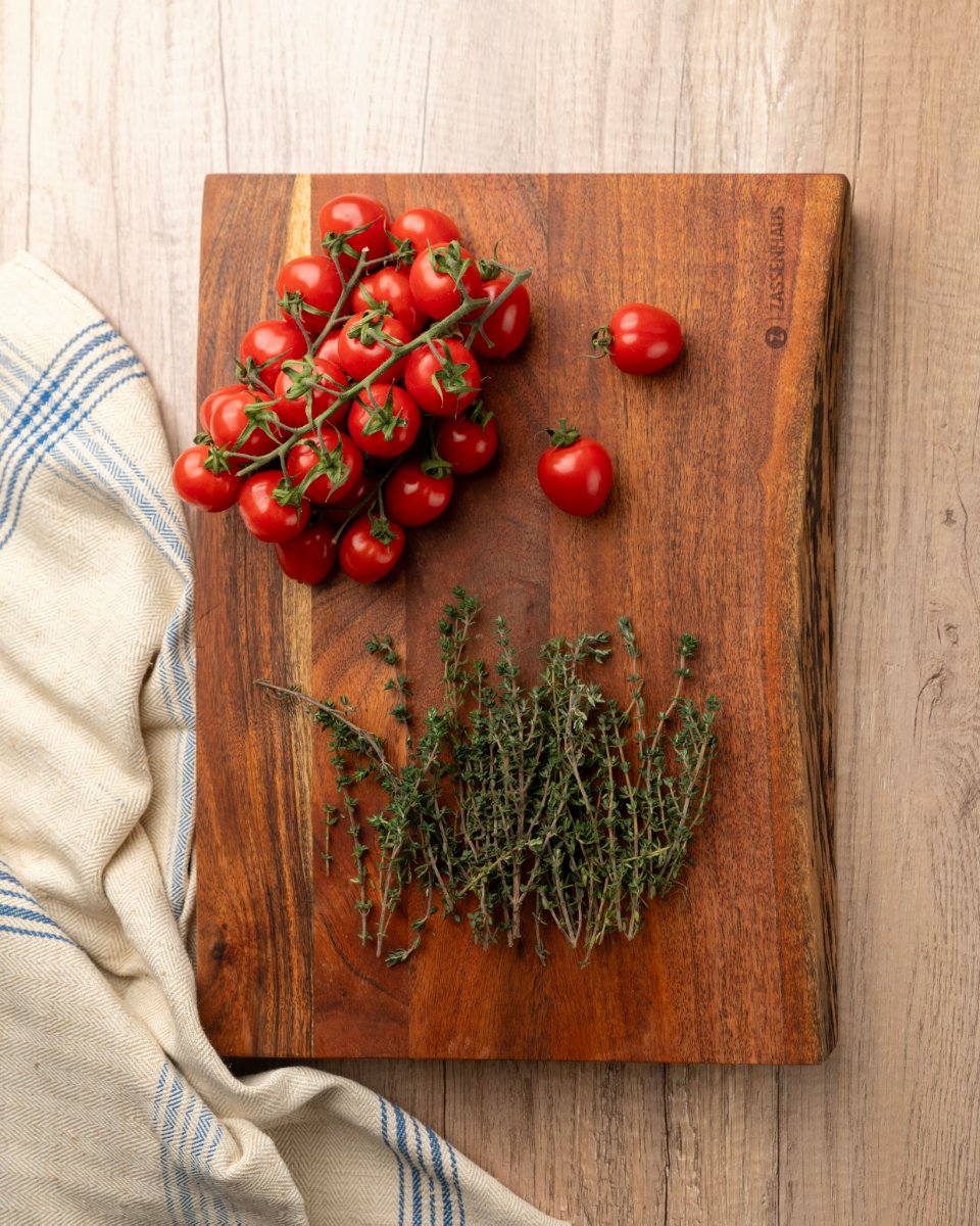 Hackblock akacia 41x30x5 cm. Det går utmärkt att duka upp på hackblocket och använda det som en snygg serveringsbräda.